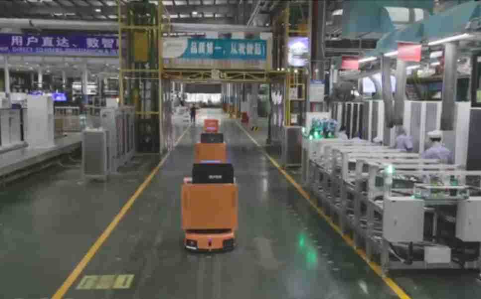 为车载冰箱物流配送打造的智能解决方案,,包含产中物流通过潜伏举升AMR搬运至线边,,,产后成品物流智能仓储,,流程包含产中物流智能齐套入库,,线边安灯叫料AMR智能配送至线边,,,,成品入库、、、、出库,,通过无人堆高车机器人,,,智能仓储管理替代人工作业管理,,,实现更高存储、、更高效率、、、更具柔性化的解决方案。。。