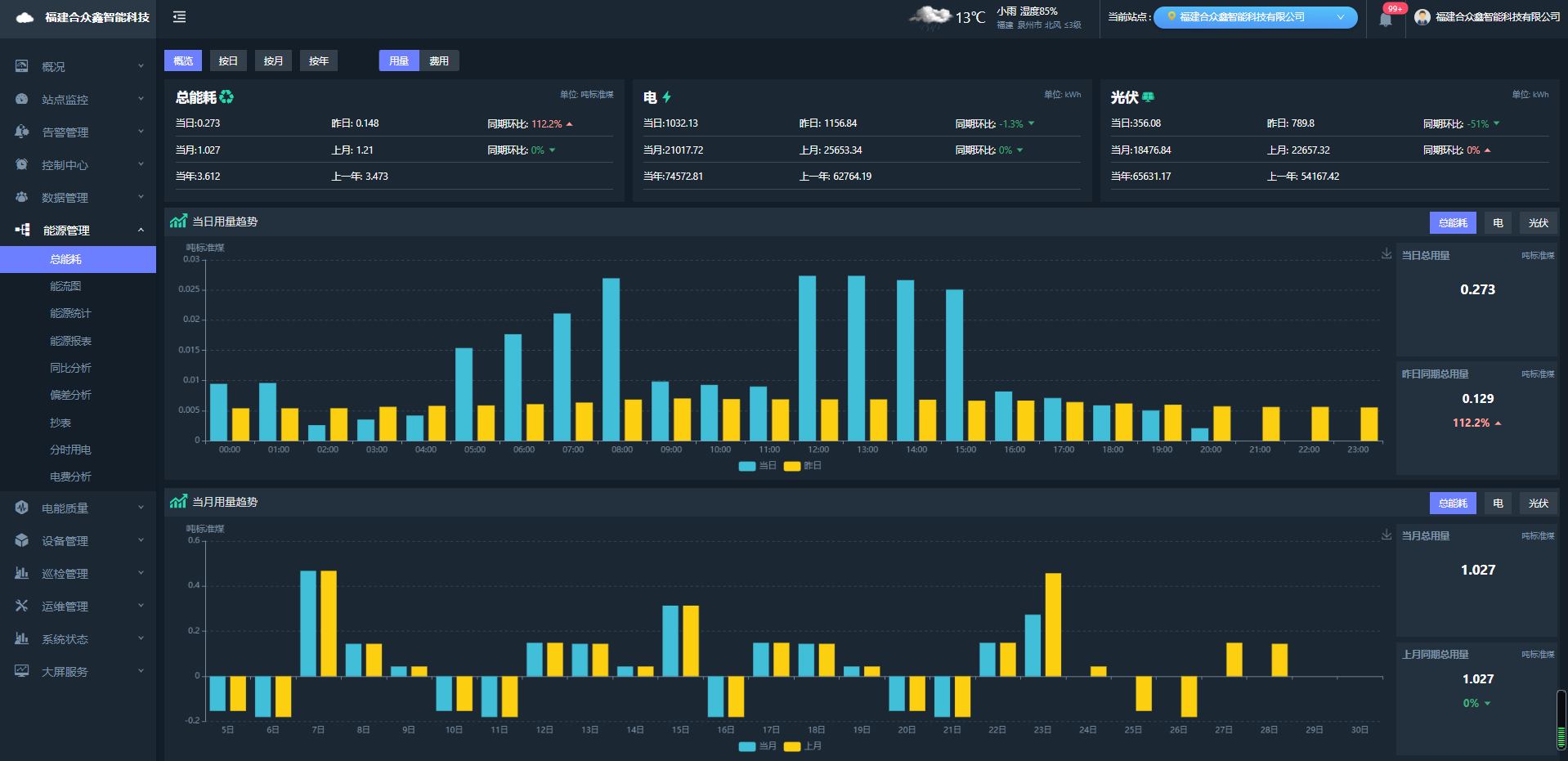 支持任意时段的综合能耗统计,,各类能源介质用量占比、、、、趋势